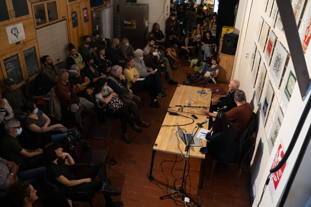 La presentació va comptar amb la participació de Tomás Ibáñez, Amador Fdez.- Savater i Júlia Ramírez Blanco, que van propiciar una xerrada al voltant de les revoltes i els moviments socials perfecta per a la inauguració d’aquesta exposició privilegiada. Així vam gaudir de la experiència en primera persona d’Ibáñez en aquell Paris convuls, fins l’anàlisi de missatges en la cartelleria del 15M de Ramírez Blanco, passant per les reflexions filosòfiques d’una vida comuna i d’eclosions col·lectives explicades per Fdez.-Savater.