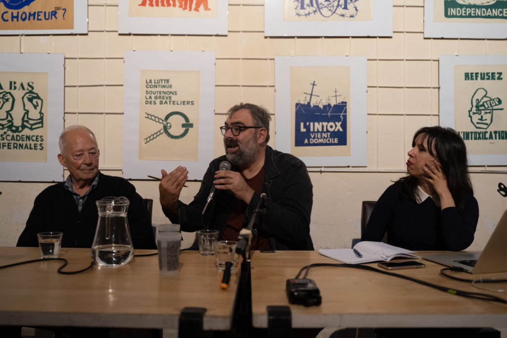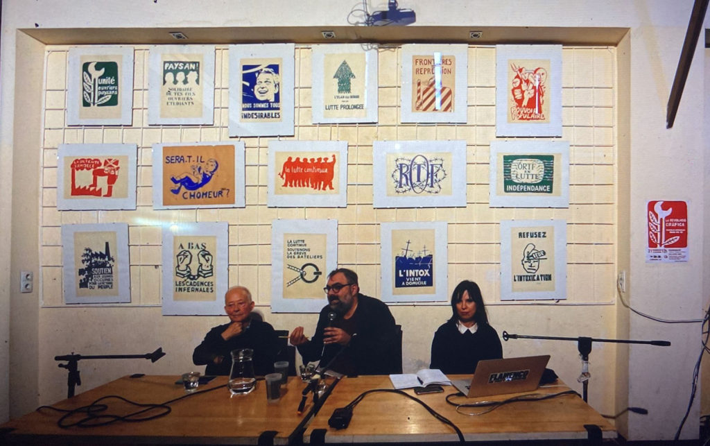 En un taller okupat per alumnes, professors i artistes on van donar el nom d’Atelier Populaire. Allí, cada matí es decidien els lemes en assemblea, a la tarda es votaven els dissenys i, a la nit, es produïen i enganxaven els affiches. Després d’introduir-se la tècnica de la serigrafia, es va fer possible fer tiratges de més de mil exemplars. Amb línies marcades i colors plans, les imatges es fonen amb el text en apel·lacions que avui encara són rellevants”.