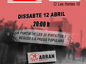 Aquest dissabte 12 d'abril, xerrada a càrrec d'alguns membres de la vaga de Panrico i després cafeta amb pintxitos i begudes a preus populars