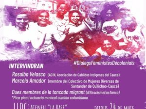 Com creua l’opressió patriarcal i l’opressió de raça a indígenes, afrodescendents, camperoles a Colòmbia i a migrades desproveïdes de drets a Europa? Com s’enfoquen les seves lluites? Quins punts tenen en comú?