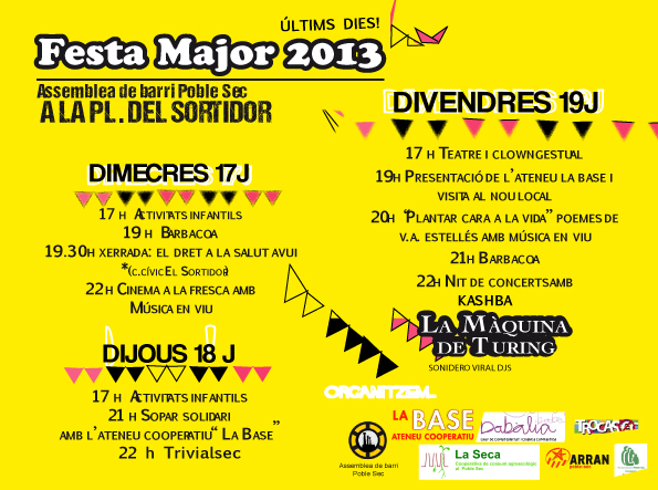 Aquest any les Festes Majors del Poble Sec celebren també la creació de l’Ateneu Cooperatiu La Base. Així, el proper divendres 19 de juliol serà la festa gran d’aquest nou espai del barri. La